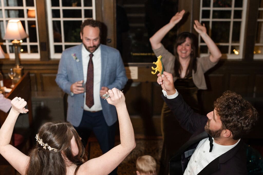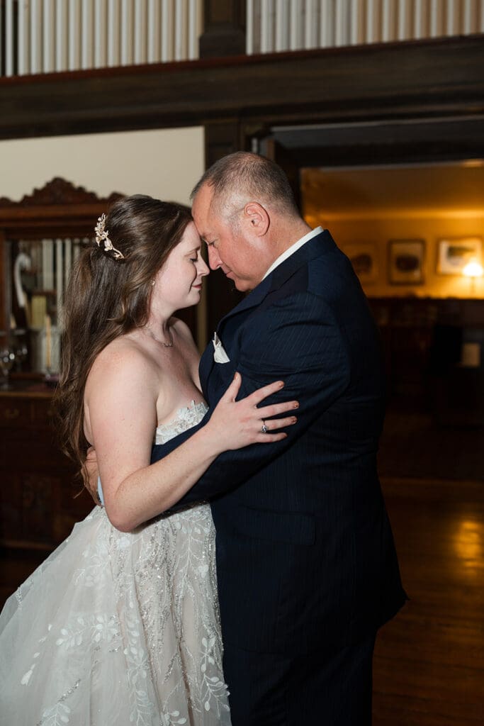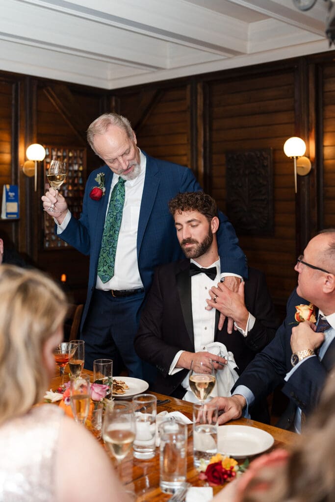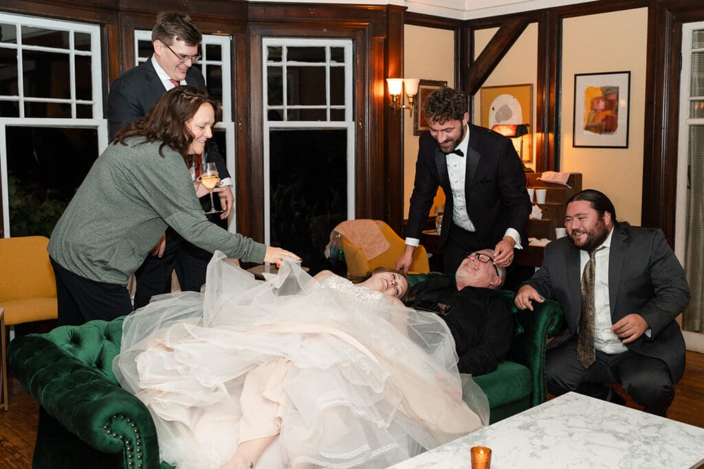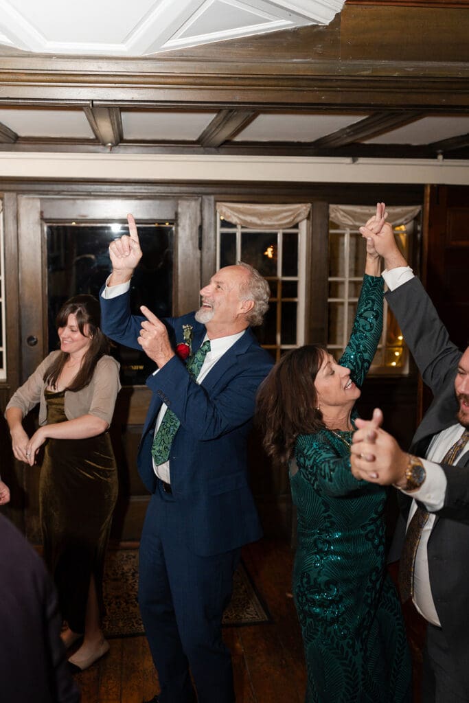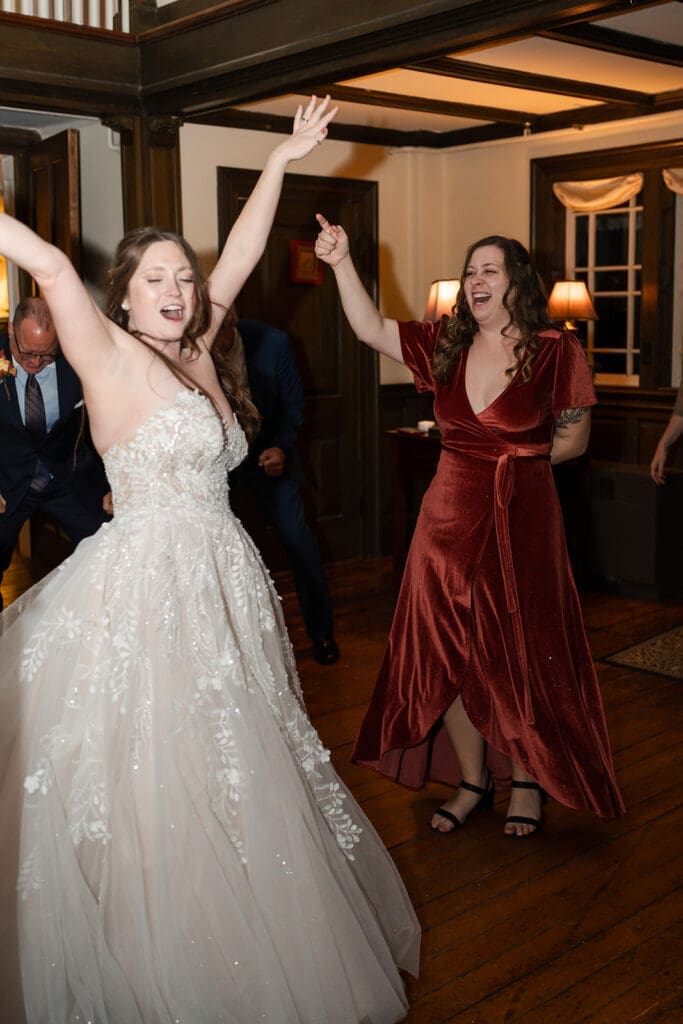 Read on to get a glimpse into this couple’s day, from getting ready with all their guests, to a sweet staircase ceremony, to a reception filled with toasts, joy, and dancing!