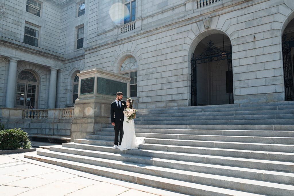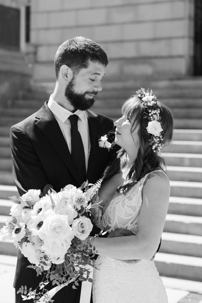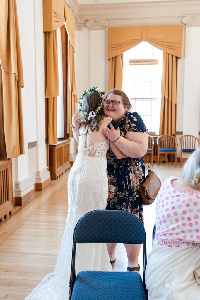 Erin and Dylan’s Portland, Maine City Hall elopement was the perfect blend of sweet and simple! Their small wedding allowed them to have a day of celebration without the pressure that sometimes comes with a bigger wedding. Their intimate day allowed space for many moments of connection with each other and their people. Interested in planning your own city hall elopement? Read on for inspo!