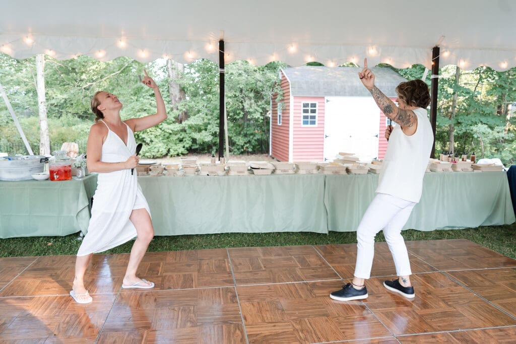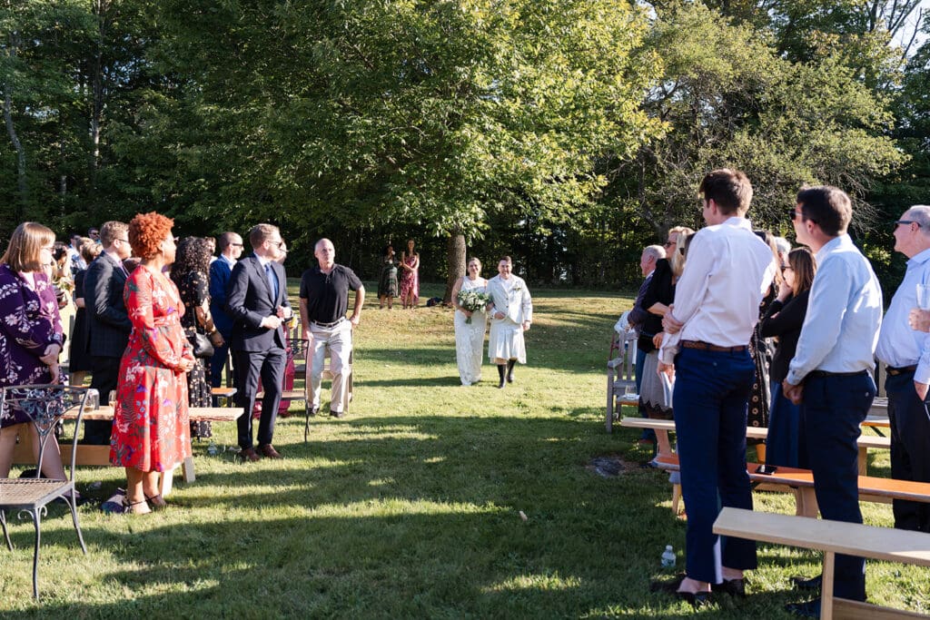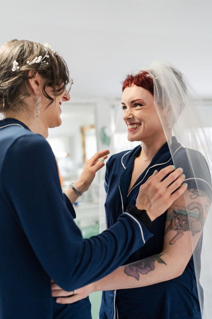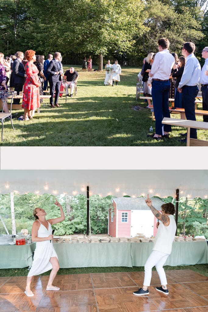 Some couples choose to get ready together. Others feel that walking down the aisle together is the most natural. Some choose to follow the layout of a traditional wedding day while still incorporating moments that feel like them (like singing into wooden spoons on the dance floor). It’s all about following your gut feeling!
